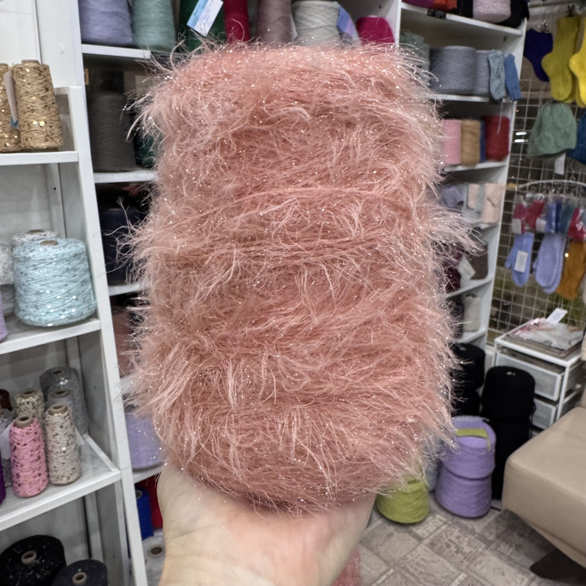 Нарядная пряжа с длинным ворсом и деликатным мерцанием.
